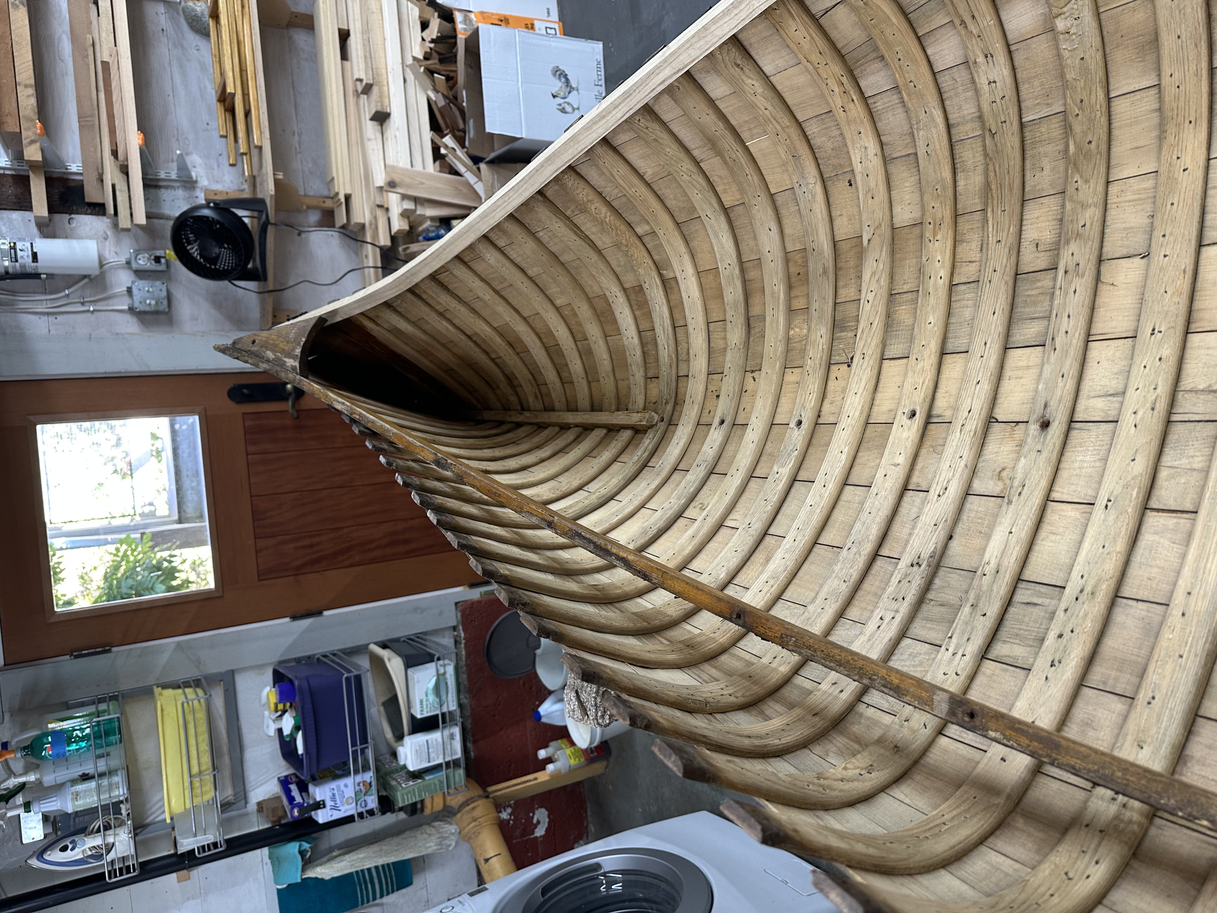 Stripping and cleaning the boat gave me a chance to go over it in finer detail. I discovered a couple of broken ribs and some planking that needed to be replaced. The more disappointing discovery was the extent of rot in the inwales. They had to be completely replaced.