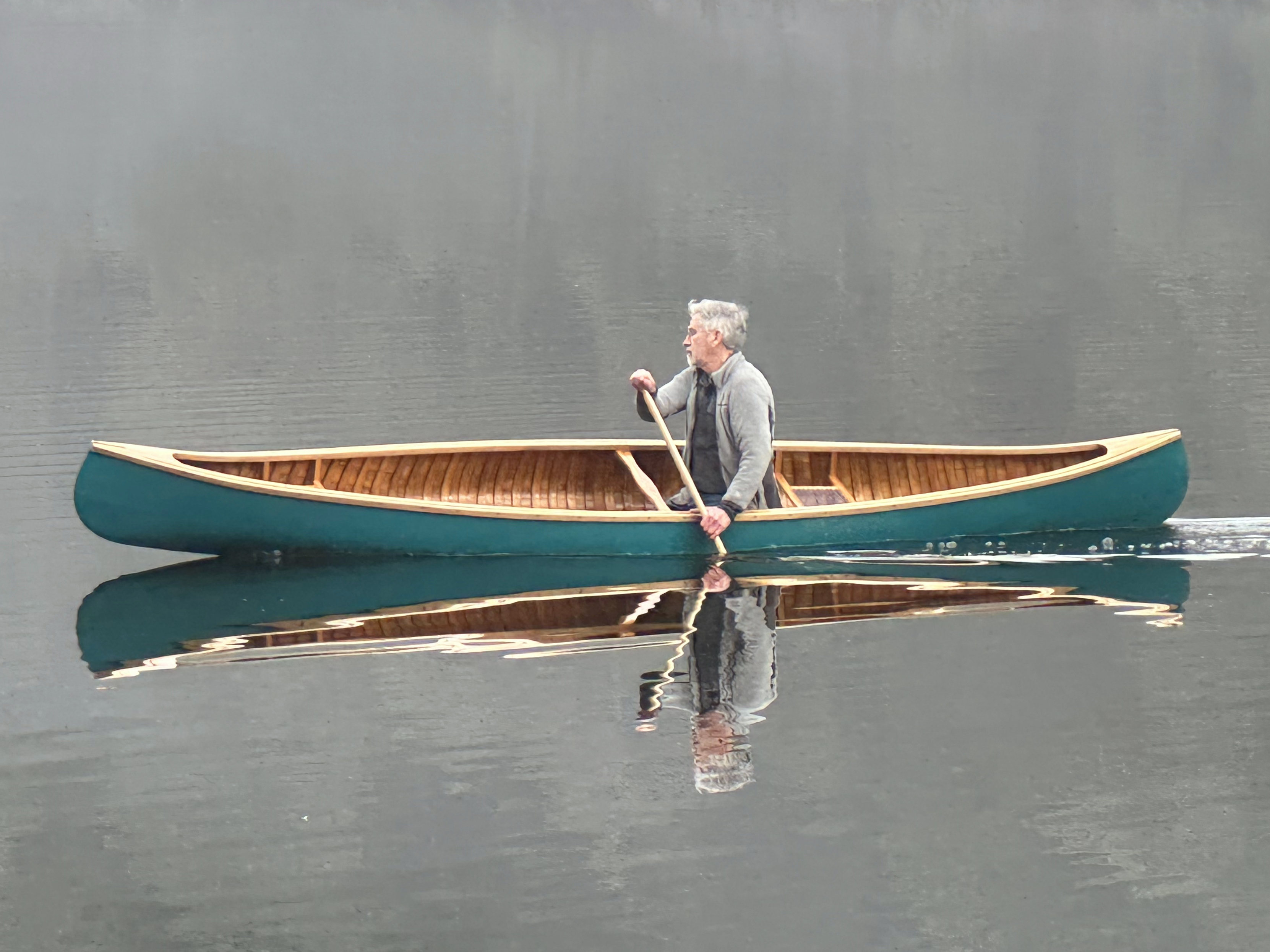 It took a few coats of paint to get things right, and then a bit of touch-up to the varnish on the gunwales. But by late January the work was done and on a warm-ish day in early February Kim and I took the boat to nearby Thetis Lake and got that canoe back onto the water. It was wonderful.