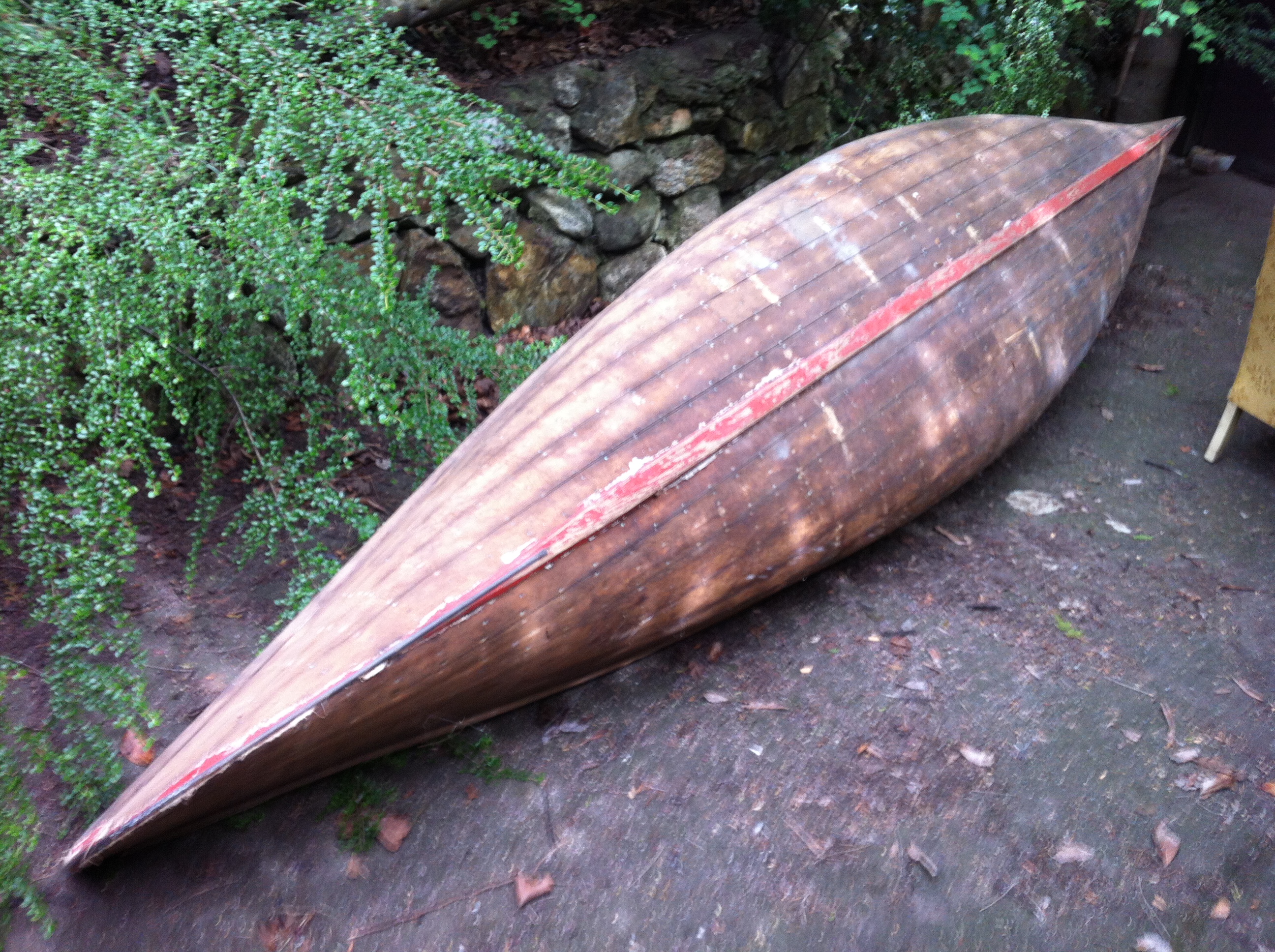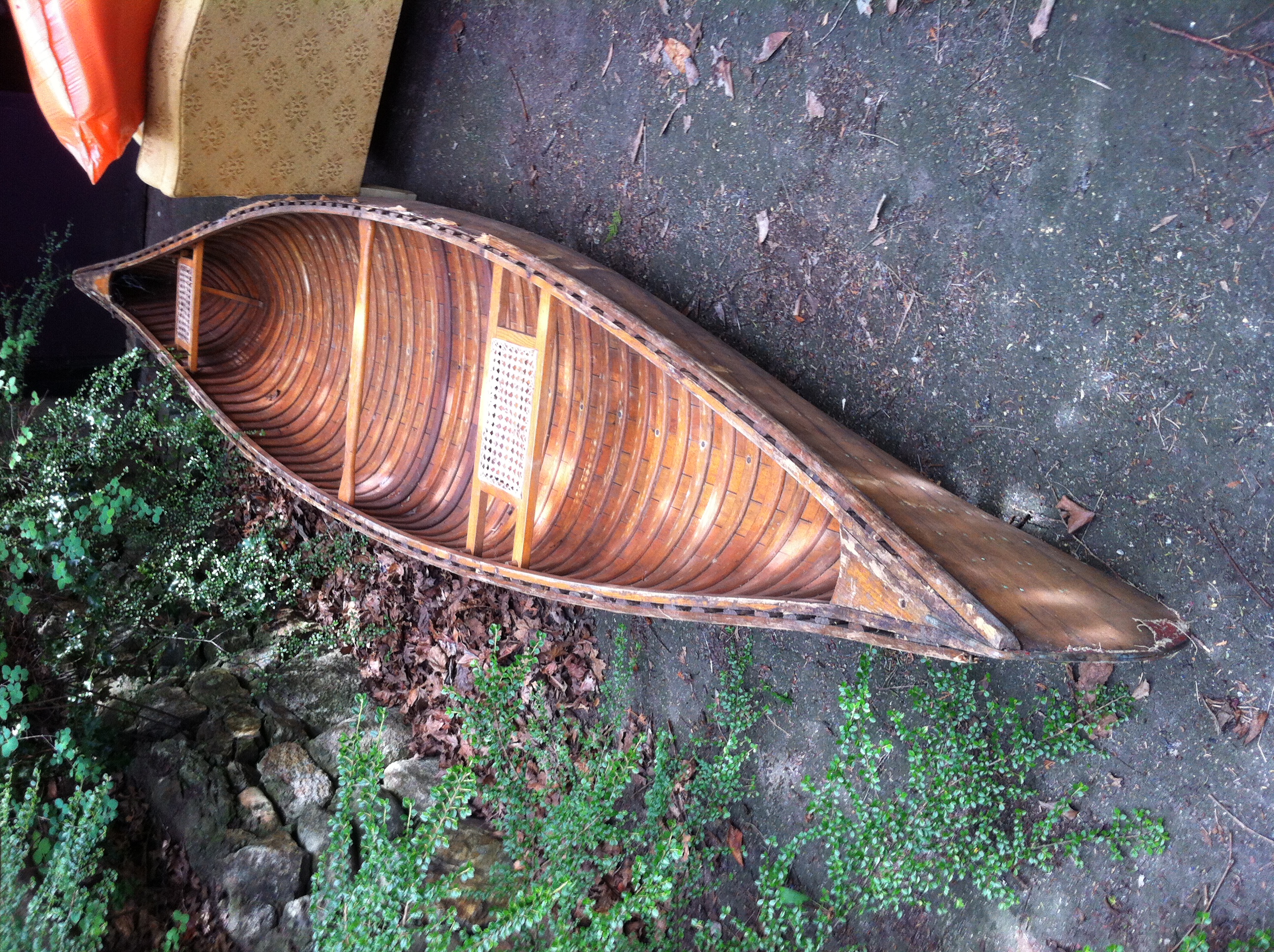 About a decade ago, my friend Alex sent some pictures of a forlorn wood canvas boat that he found while helping to clean out a basement. The boat was a give-away. He asked if I was interested. It looked sad and dusty. It’s canvas was gone but otherwise seemed in pretty good shape. I had way too much going on at the time but I had space for it in our basement and I figured that I could get around to it eventually. So I said yes.
