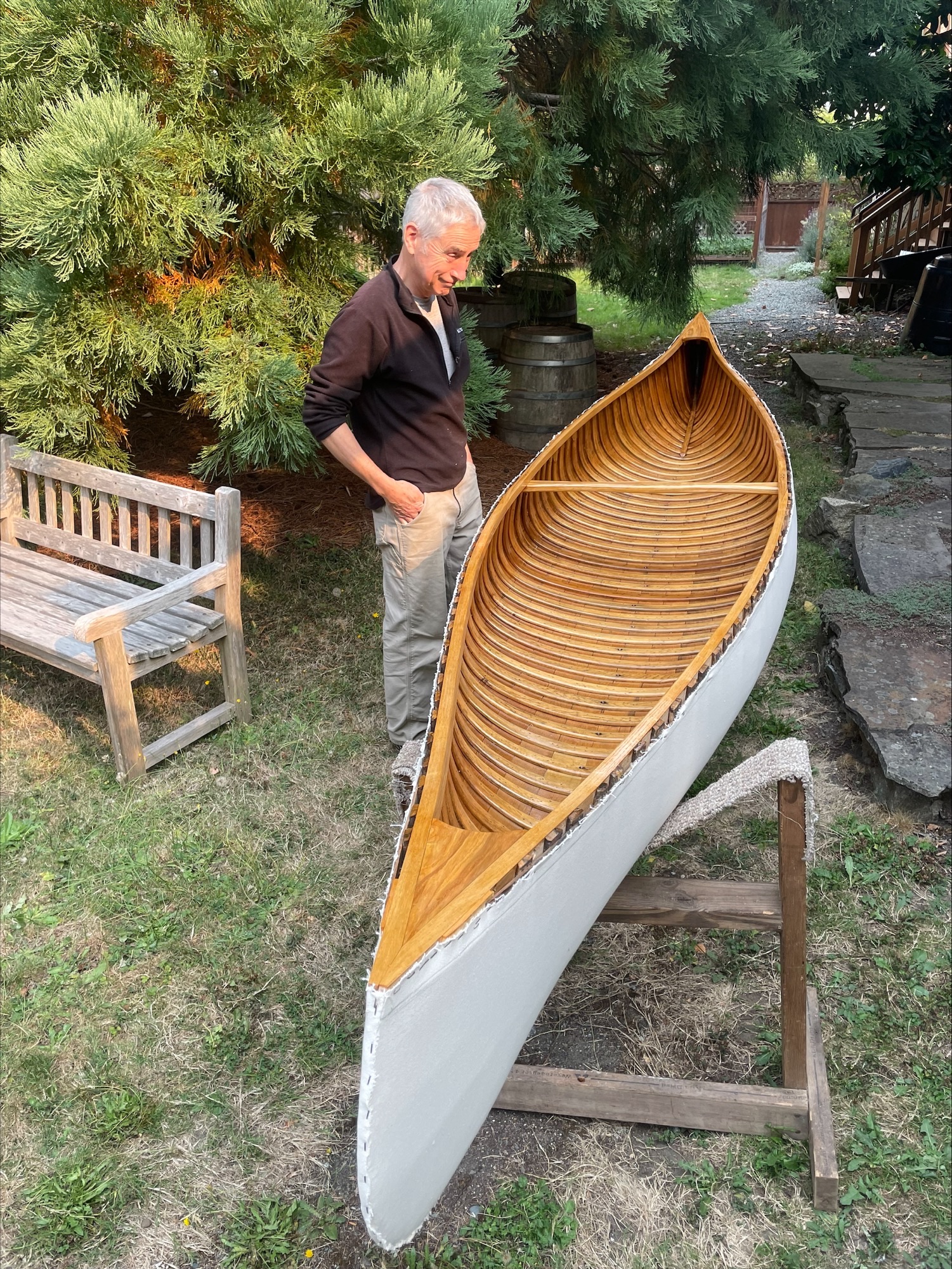 Right:Kim caught me admiring the canoe just after we had finished getting the canvas on it.